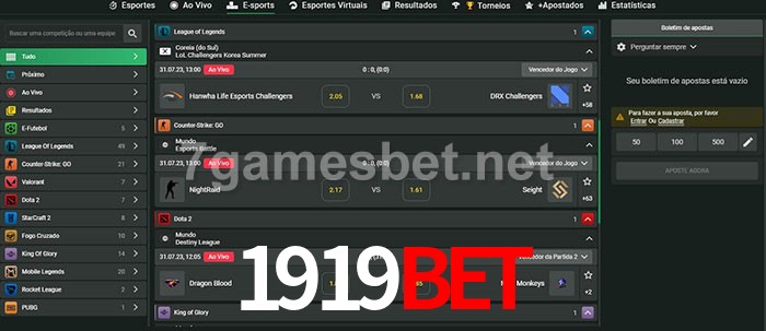 A aposta 1919Bet oferece aos jogadores a experiência mais conveniente de apostas em eSports!